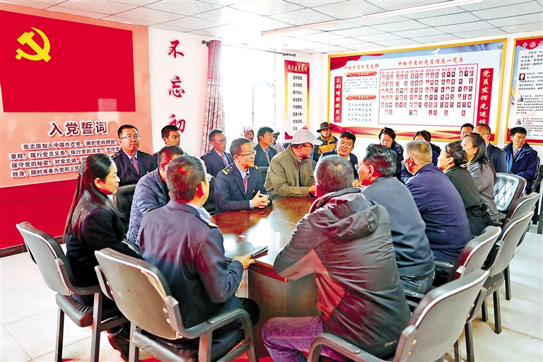 黨員代表同申格卡崗村黨員面對面座談交流。記者 旦增蘭澤 通訊員 馬生明 攝