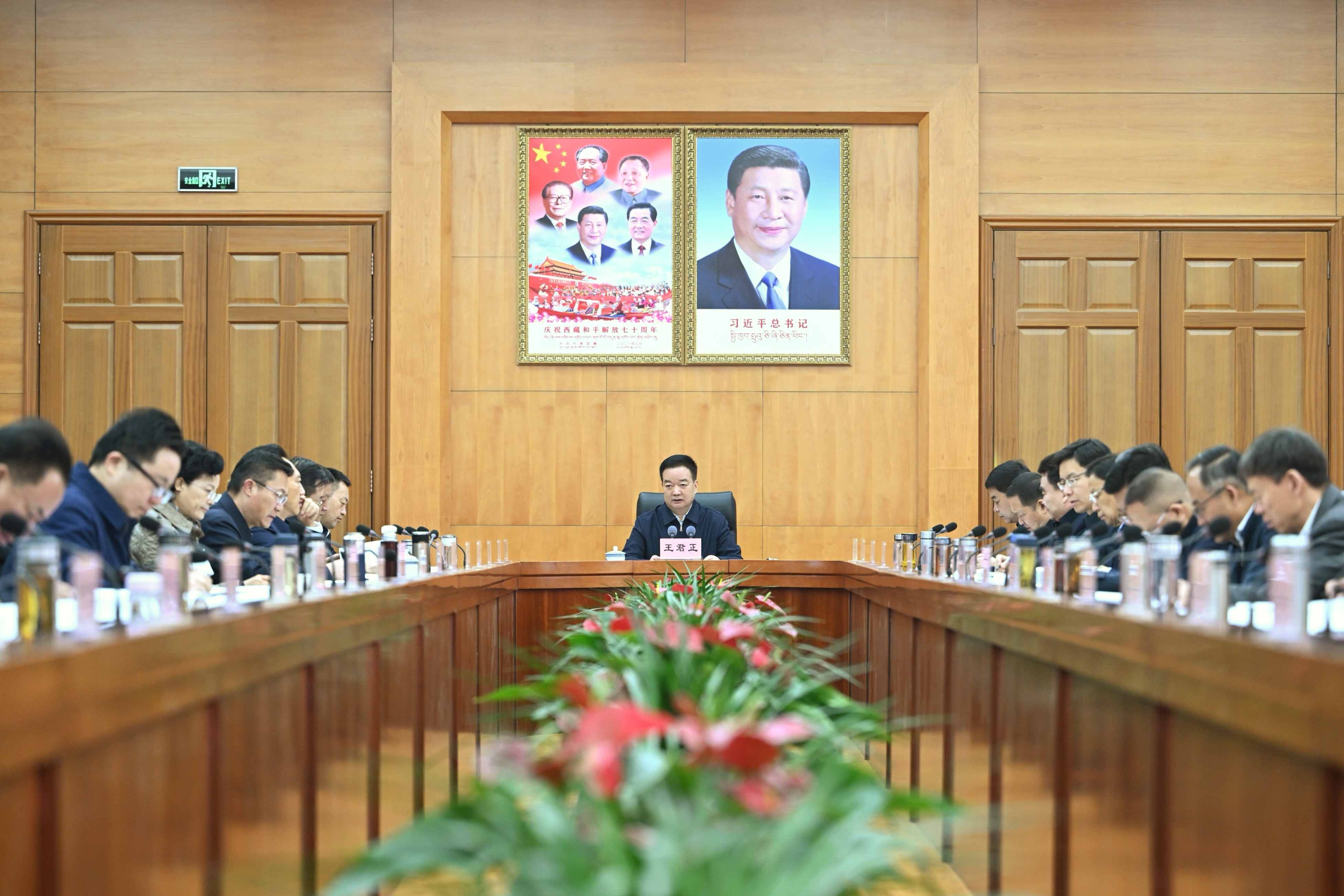 2月12日上午,自治區黨委書記王君正主持召開自治區黨委理論學習中心組專題學習會。這是會議現場。記者 旦增西旦 攝